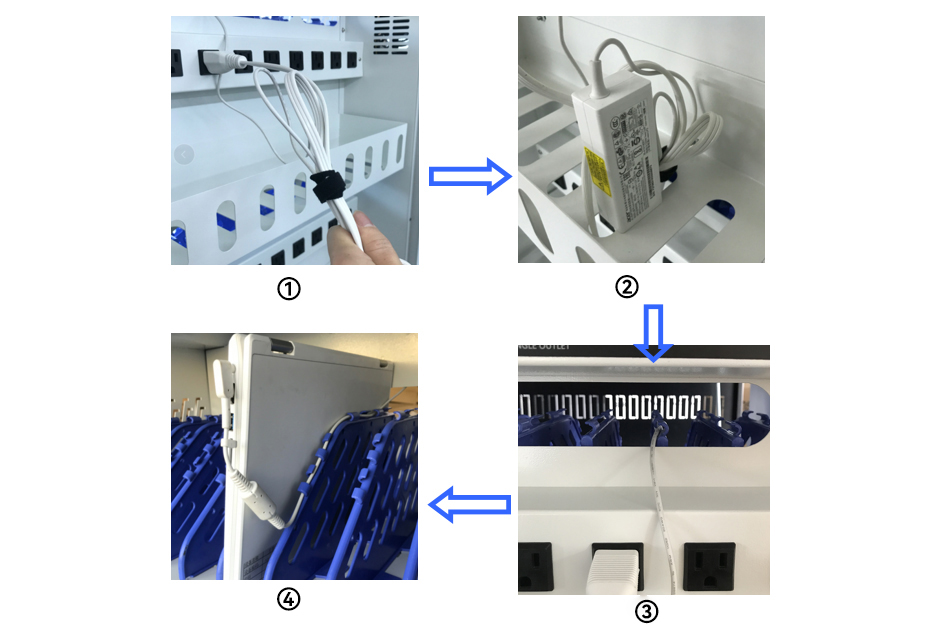 平板充電柜的操作流程主要有關(guān)閉總電源接入市電、插入設(shè)備充電頭、將設(shè)備適配器放好等幾步,具體操作如下