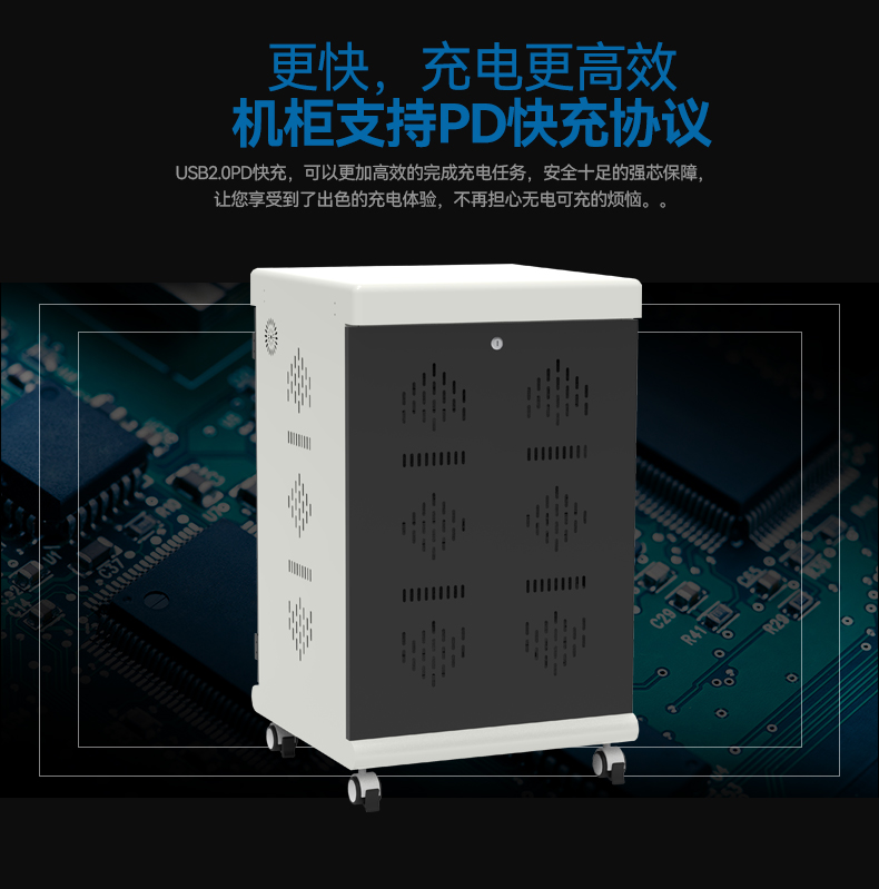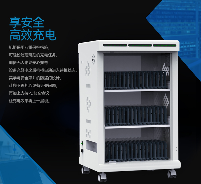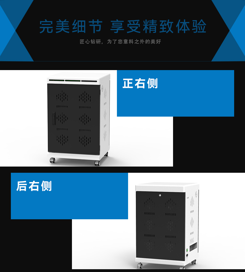 4.隱藏式把手設(shè)計:將整個頂部設(shè)計成隱藏式把手結(jié)構(gòu),無需安裝外置把手,推動便捷。★ 5.前門最大旋轉(zhuǎn)角度270°,在使用者操作時,盡量少占用使用場景空間,方便拿取,同時該設(shè)計有效降低門的故障率?!铩铩?nbsp; 6.前門采用三點式平面鎖,防盜性能超過常規(guī)鎖?!?nbsp; 7.充電狀態(tài)顯示:配備抬頭LED指示燈面板(采用PC材質(zhì),顯示清晰,美觀耐用),對每一臺電腦的充電狀態(tài)進(jìn)行全面監(jiān)測,充電中顯示紅燈,充滿顯示綠燈?!铩铩?nbsp;