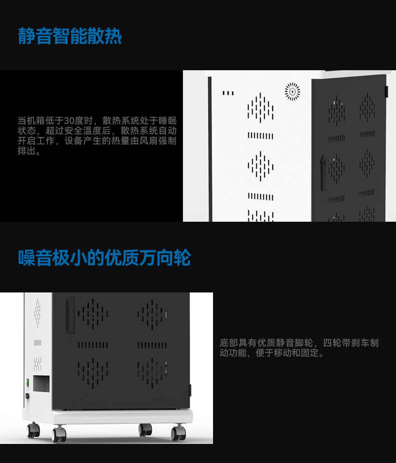 1.靜音設(shè)計: ①采用醫(yī)用靜音萬向轉(zhuǎn)輪; ②智能溫控雙排氣靜音風(fēng)扇?!?br />